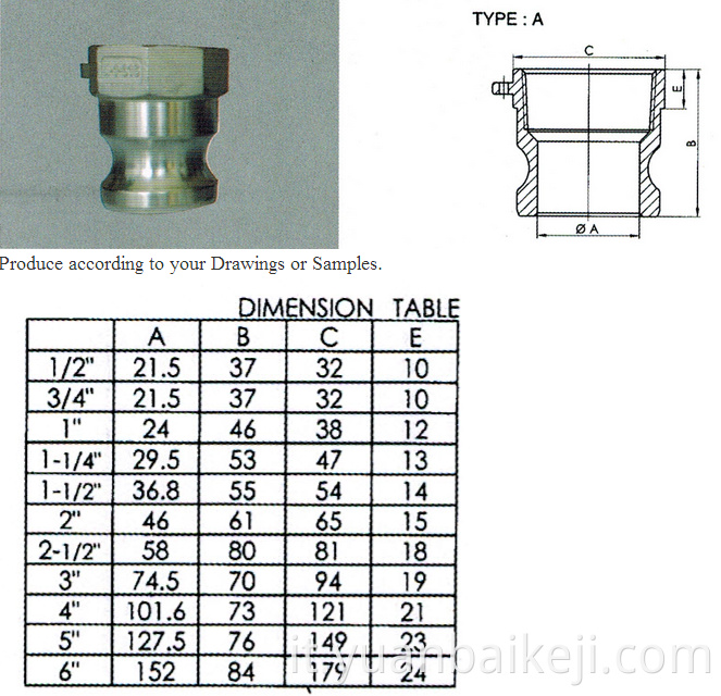 Materiale in alluminio Accoppiamento a camme e grove Tipo A