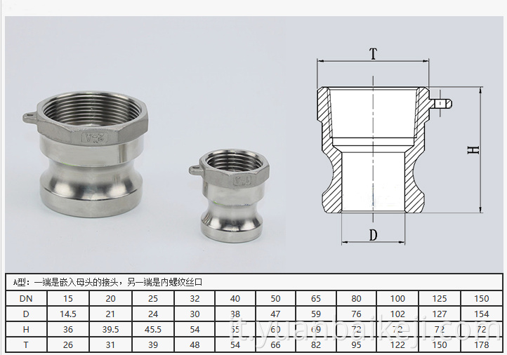 ● Tipo A: - Un'estremità è il giunto incorporato nella testa femminile e l'altra estremità è la porta del filo interno;